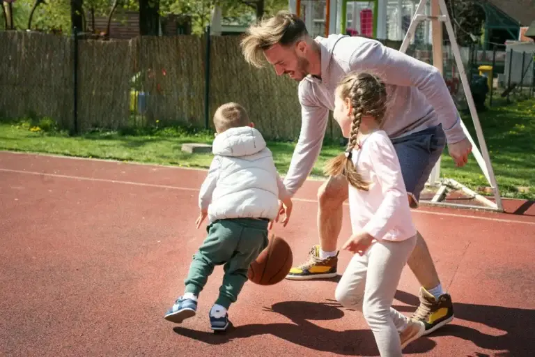 Άνδρας με αγκυλοποιητική σπονδυλαρθρίτιδα παίζει μπάσκετ με παιδιά - ευλυγισία σπονδυλικής μετά από ομοιοπαθητική θεραπεία
