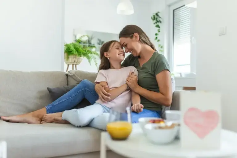Μητέρα και κόρη χαμογελαστές στον καναπέ - Βελτίωση ποιότητας ζωής στην ελκώδη κολίτιδα με ομοιοπαθητική